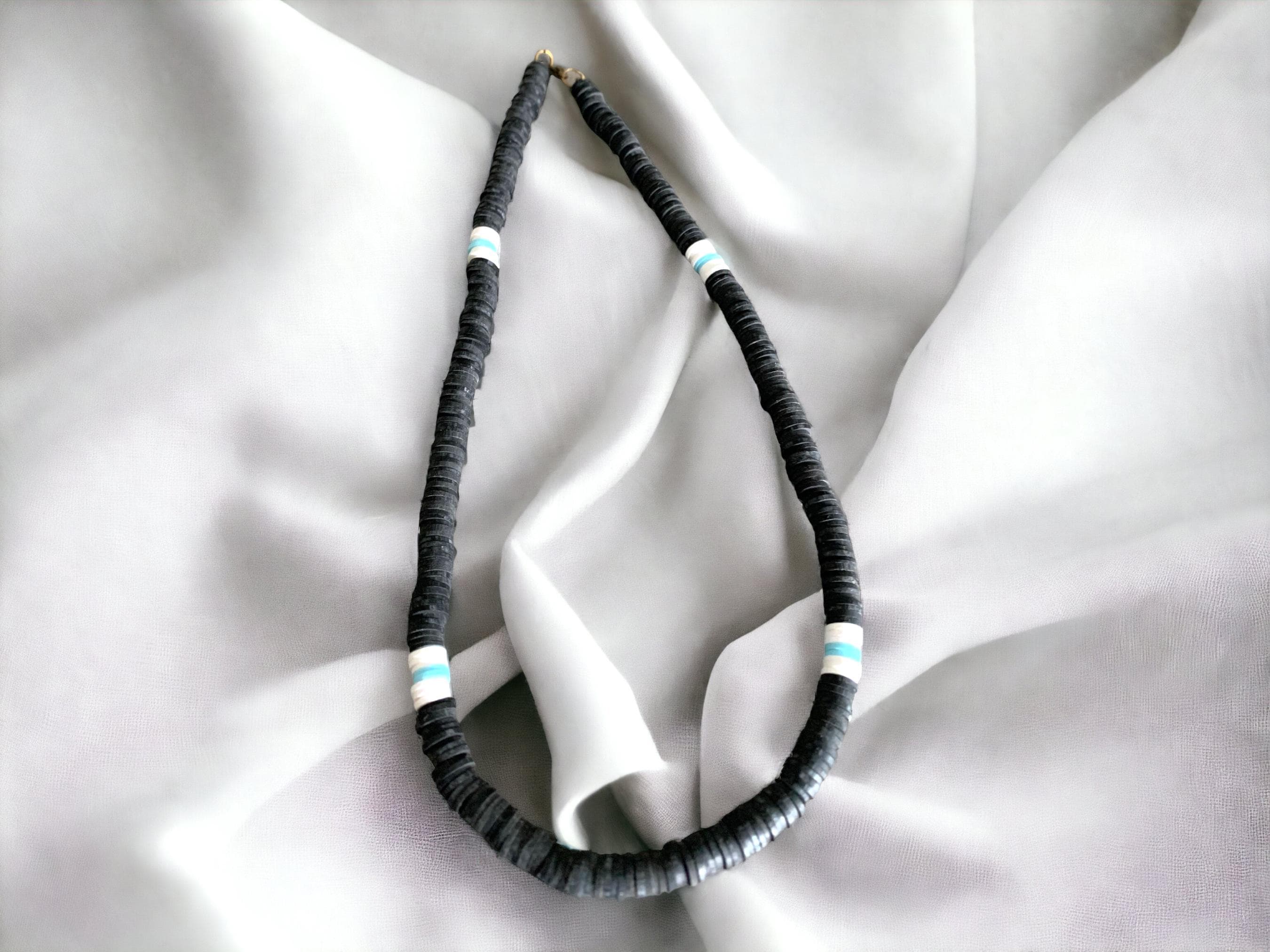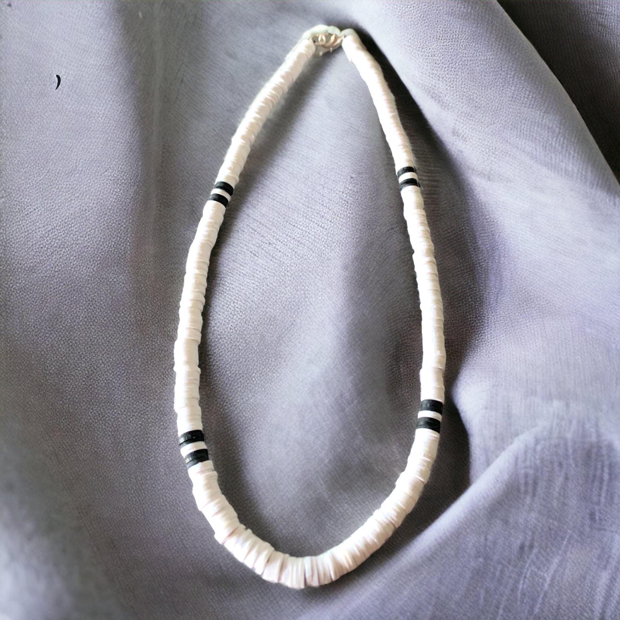 Fun, bright, and beautiful Polymer clay beaded. Fun for everyday wear or for those surfing days, great for adding a pop of colour to any outfit. Teen Boys Polymer Clay Bead Necklace, Boys White & Black Necklace, Boys Black & White Necklace. Beach Necklaces for Men.