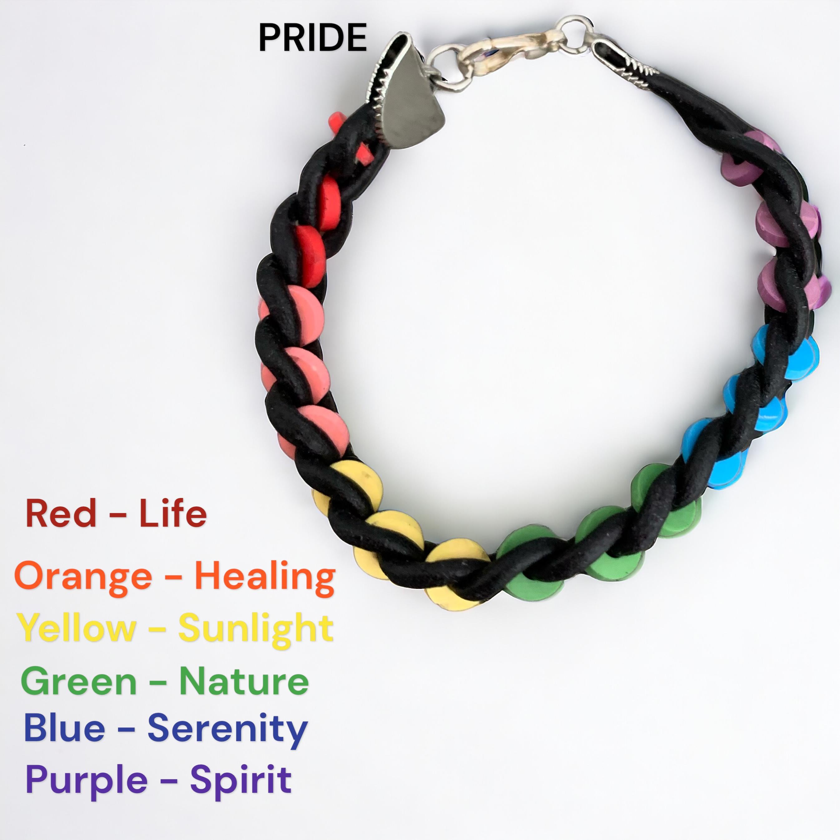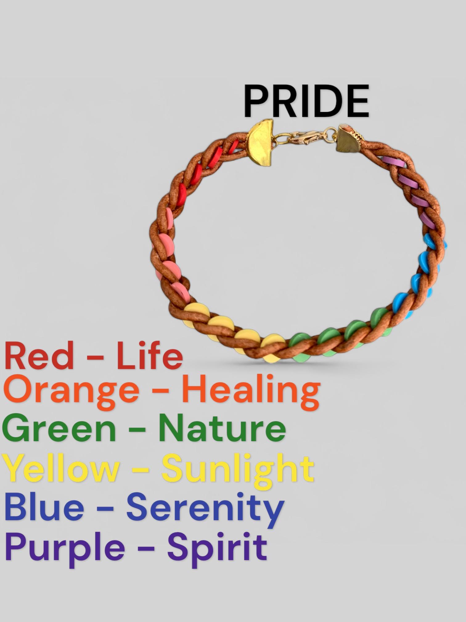 Three Strand O - Ring Leather Bracelets, Leather Lace Bracelets with Colourful O - Rings and a Magnetic Clasp. Will Brighten up any outfit you wear. Express your pride with our Rainbow with this Black or Brown Leather Braided Band Bracelet with a rainbow of polymer disc, makes a sophisticated accessory. This bracelet symbolizes unity and diversity. Elevate your fashion statement while embracing the spirit of pride with this tastefully designed accessory
